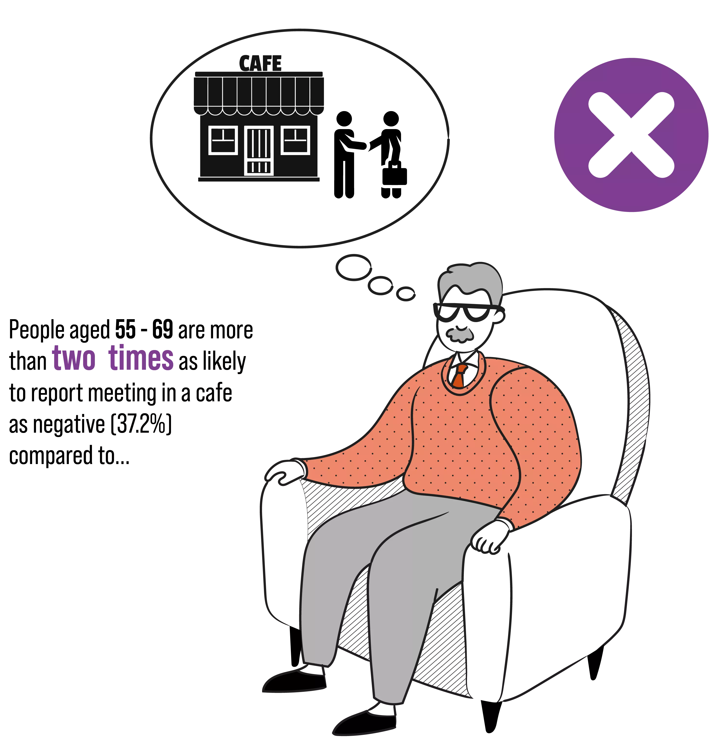تُظهر البيانات أن الأشخاص الذين تتراوح أعمارهم بين ٥٥ و ٦٩ عامًا أكثر قابلية بمقدار الضعف للنظر إلى عقد الاجتماعات في المقاهي على أنه أمر سلبي مقارنة بمن تتراوح أعمارهم بين ٢٥ و ٣٤ عامًا. يدل ذلك على أن مستقبل العمل قد تغير وخلق اتجاهات جديدة في مكان العمل مثل الاجتماع خارج المكتب في بيئة غير مؤسسية. إذا لم يُنجز عملك من مكتب احترافي -على سبيل المثال مكتب منزلي أو صالة عمل مشتركة- فهناك دائمًا خيارات يمكن اتخاذها لخلق انطباع أول رائع للعميل مثل غرف اجتماعات سيرفكورب. تسمح لك غرف الاجتماعات باستئجار مساحات مكتبية احترافية للاجتماعات والأنشطة التجاريـة الأخرى سواء لمدة ساعة أو ليوم واحد.